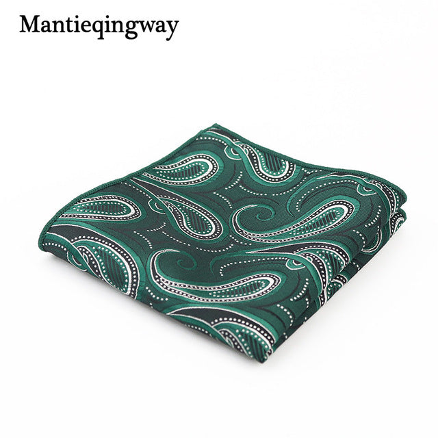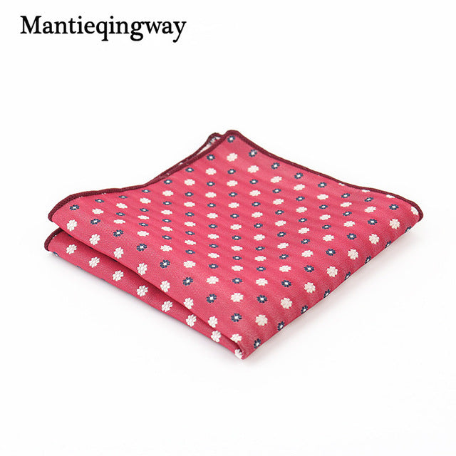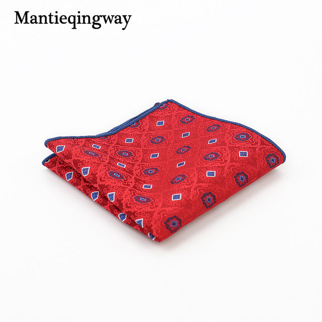 Mantieqingway Paisley Flower Dots Pattern Handkerchief Men Business Suit Polyester Pocket Square Navy Stripe Red Handkerchiefs